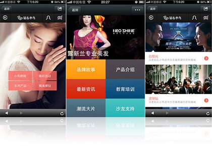 微官网是指将企业信息、服务、活动等内容通过微信网页的方式进行表现,用户只要通过简单的设置,就能快速生成属于您自己的微信3G网站,并且有各种精美模板,供您选择,还有自定义模版,可以设计出自己的风格,不但提高了信息量,也使信息的展现更加赏心悦目,进一步提高用户体验。